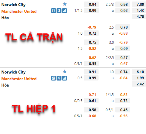 Trên sàn giao dịch châu Á, nhà cái vẫn duy trì mức chấp 1 1/4 cho Man Utd, cùng với thang điểm ăn cân bằng thay vì mức thấp cho chủ nhà trước đó. Vì vậy hy vọng cho Man Utd vẫn là rất lớn. Trong khi đó, dù sử dụng đội hình thấp, nhưng kèo tổng bàn thắng vẫn duy trì khá cao là 2 3/4, hy vọng cho kịch bản tưng bừng là vẫn có.