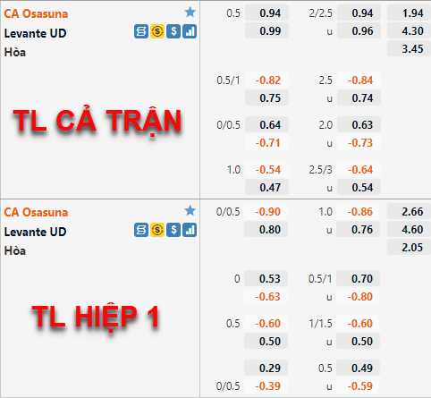 * Chốt kèo trận Osasuna vs Levante (00h30 ngày 20/3)