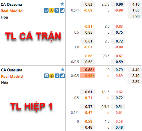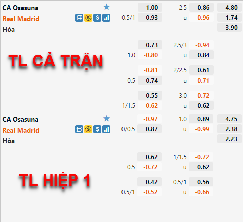 Tham khảo: Osasuna +1/4 Hiệp 1