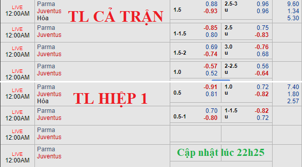 Tham khảo: Parma +1 1/2 cả trận