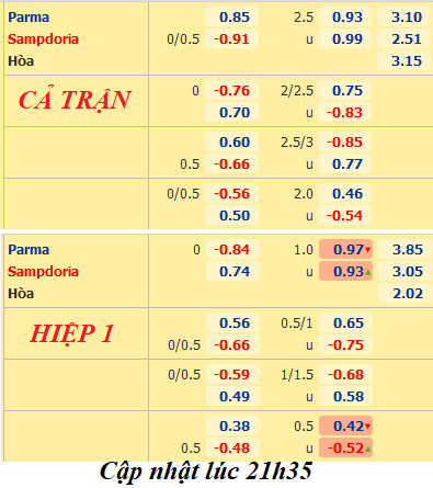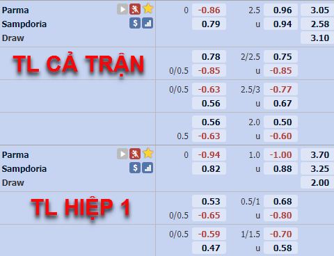 Trên sàn giao dịch châu Á, Parma đang tỏ ra hụt hơi khi kèo chính 0:0 đã kéo lên mức 1/4:0. Điều này được lý giải khi đội khách có phong độ ấn tượng hơn trong thời gian gần đây. Hơn nữa, trên băng ghế huấn luyện cũng được đánh giá cao hơn với sự góp mặt Claudio Ranieri.