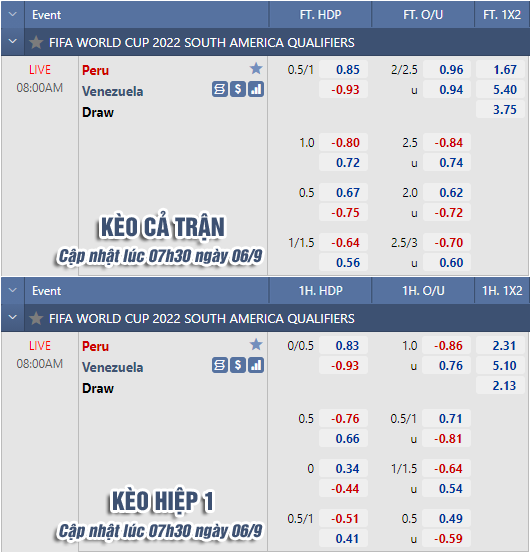 * Chốt kèo trận Peru vs Venezuela (08h00 ngày 6/9)