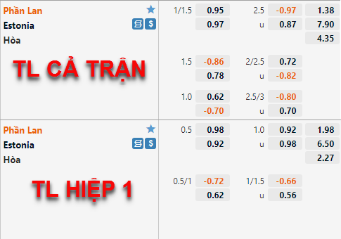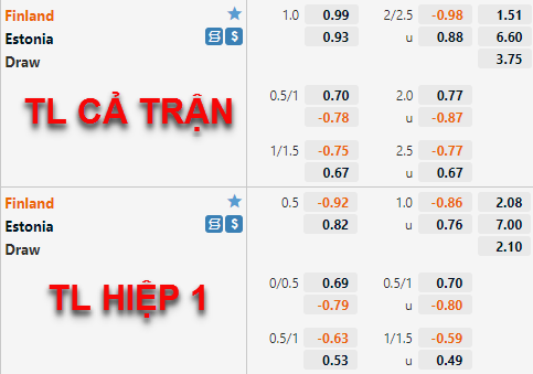 Tỷ lệ chấp chính của Phần Lan đã được nhà cái kéo xuống mức 1 hoà thay cho mức 1 1/4 ở lần chúng tôi cập nhật trước đây. Bên phía tỷ lệ tài xỉu của trận đấu cũng có diễn biến tương tự khi mốc 2 1/2 trước đây đã được thay thế bằng mốc 2 1/4 hiện tại.