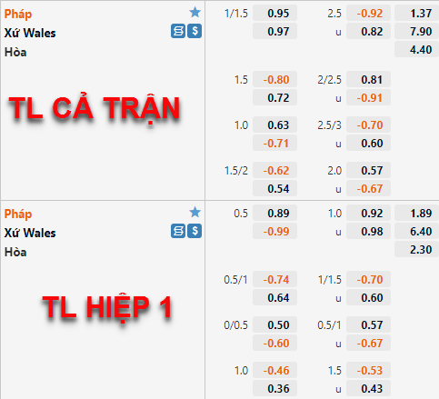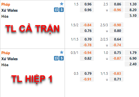 Wales +1 1/4 cả trận