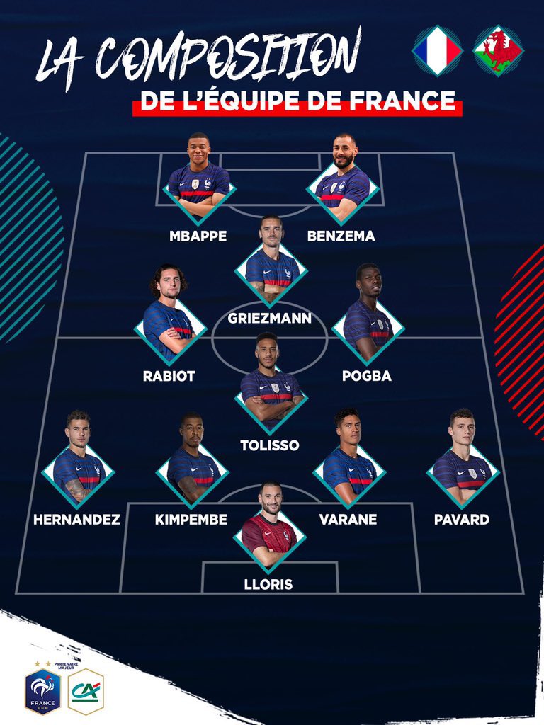 Pháp (4-2-3-1): Mike Maignan; Leo Dubois, Jules Kounde, Clement Lenglet, Lucas Digne; Adrien Rabiot, Moussa Sissoko; Ousmane Dembele, Antoine Griezmann, Thomas Lemar; Karim Benzema.