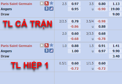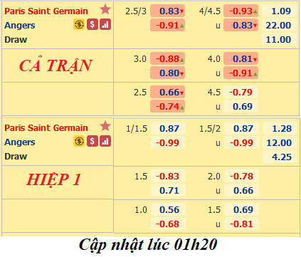 Đầu phiên giao dich sáng nay còn chứng kiến PSG chấp 2 1/2 cùng điểm ăn cân bằng như ảnh chúng tỷ lệ chúng tôi cập nhật bên dưới. Nhưng đến lúc này, kèo chính đã kéo sát lên mốc nhà ĐKVĐ chấp 3 hòa.
