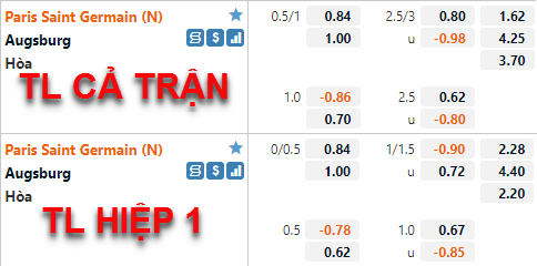 AEGoal chốt kèo bóng đá trực tiếp trận PSG vs Augsburg diễn ra lúc 00h00 ngày 22/7 trong khuôn khổ trận đấu giao hữu cấp CLB sau khi dựa trên tính toán, chuyển động về kèo châu Á và đội hình ra sân của 2 đội.