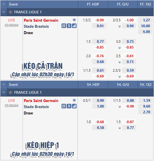 Dù có những thiếu vắng trong đội hình, thế nhưng những cái tên còn lại của PSG vẫn tỏ ra hoàn toàn áp đảo so với Brest. Tuy vậy thì diễn biến trên sàn giao dịch châu Á đã khiến niềm tin cho họ suy giảm khi mức chấp 2 hoà đã hạ xuống 1 3/4.