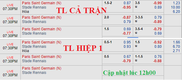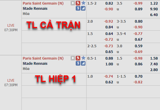 Những biến động của thị trường châu Á đem lại dấu hiệu tốt cho việc lựa chọn cửa trên trong trận đấu này. Điều này cũng hợp lý khi PSG xuất phát với đội hình mạnh, với đẳng cấp vượt trội đại diện Paris hoàn toàn có thể đè bẹp đối thủ, trái ngược lại thì ở phía bên kia Rennes lại không thể hiện được nhiều trong loạt trận đấu trước mùa giải. Đây sẽ là trận đấu khó khăn cho thầy trò HLV Julien Stephan.
