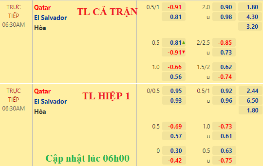 Chốt kèo trực tiếp trận Qatar vs El Salvador (06h30):