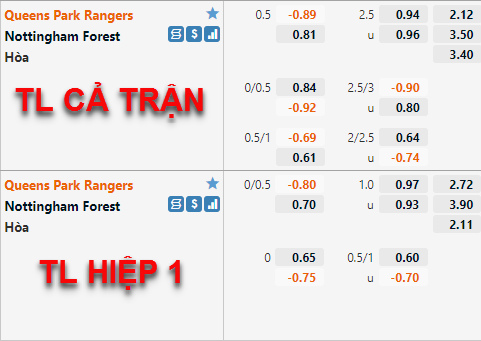 Đang có thành tích tốt hơn đáng kể so với Nottingham nhưng kèo châu Á lại chứng kiến QPR khá mong manh với tỷ lệ chấp 1/4. Đáng nói, diễn biến đến sát giờ bóng lăn lại chứng kiến đội chủ nhà giảm nhẹ khi kèo chấp 1/4 đã có lợi điểm cân bằng hơn hồi đầu phiên.