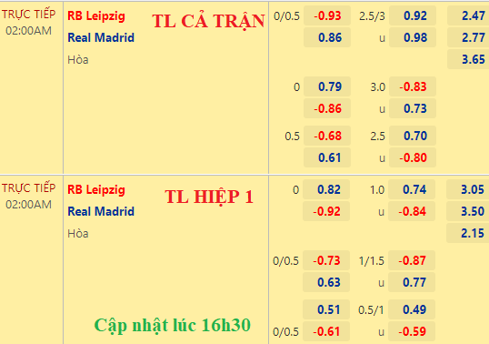 Chốt kèo trực tiếp trận RB Leipzig vs Real Madrid (02h00):