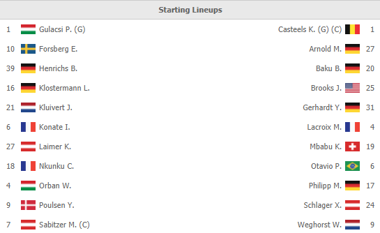 Không có bất ngờ nào ở cách bố trí đội hình của đôi bên khi những nhân tố chủ chốt như Sabitzer, Nkunku, Laimer, Forsberg (RB Leipzig) hay Weghorst, Philipp (Wolfsburg) đều đá chính.