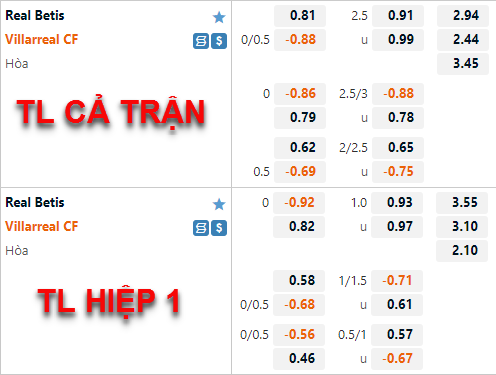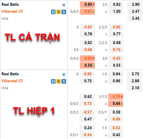 Đội khách Villarreal tiếp tục duy trì được tỷ lệ chấp chính ở mức 1/4 như thời điểm chúng tôi cập nhật lần trước, điểm ăn của cửa trên còn có xu hướng giảm điểm nhưng không nhiều. Trong khi đó tỷ lệ tài xỉu của trận đấu lại gần như không có biến động nào đáng kể, mốc 2 1/2 tiếp tục được duy trì là mốc chính và điểm ăn 2 cửa không có nhiều thay đổi.