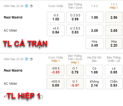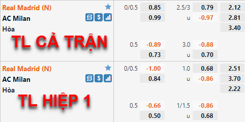 AEGoal chốt kèo bóng đá trực tiếp trận Real Madrid vs AC Milan diễn ra lúc 23h30 ngày 08/8 trong khuôn khổ giao hữu cấp câu lạc bộ sau khi dựa trên tính toán, chuyển động về kèo châu Á và đội hình ra sân của 2 đội.