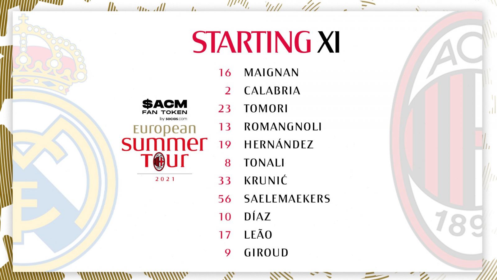 - AC Milan (4-2-3-1): Maignan - Conti, Tomori, Romagnoli, Ballo-Toure - Tonali, Krunic - Castillejo, Diaz, Rebic - Giroud