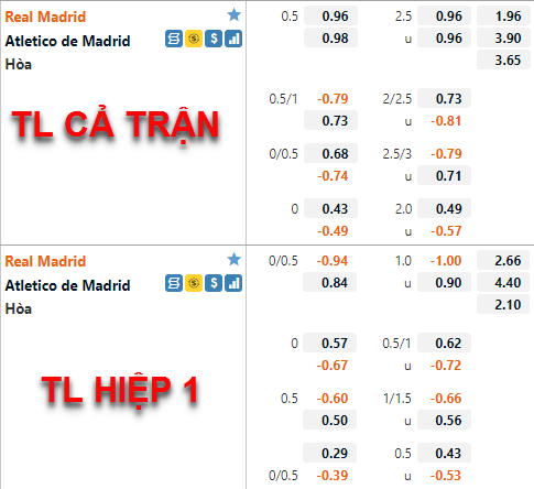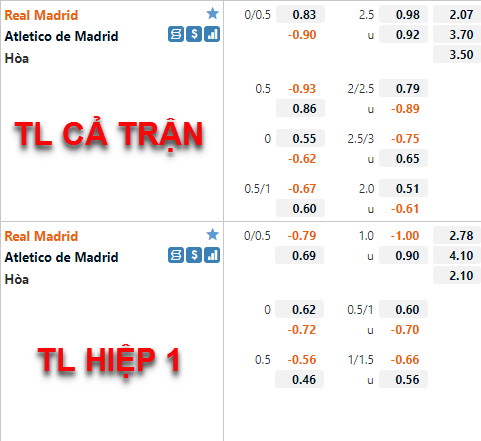 Hiện tại tỷ lệ chấp chính của Real Madrid vãn được duy trì ở mức 1/2 như thời điểm chúng tôi cập nhật lần trước nhưng điểm ăn của đội chủ nhà đã được điều chỉnh giảm rõ rệt so với trước đây. Trong khi đó thì tỷ lệ tài xỉu của trận đấu lại không có nhiều biến động, mốc 2 1/2 vẫn là mốc chính của trận đấu và điểm ăn 2 cửa cũng có không nhiều thay đổi.
