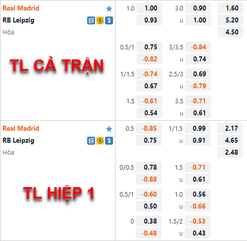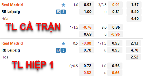 AEGoal chốt kèo bóng đá trực tiếp trận Real Madrid vs RB Leipzig diễn ra lúc 02h00 ngày 15/09 trong khuôn khổ giải cúp C1 Châu Âu sau khi dựa trên tính toán, chuyển động về kèo châu Á và đội hình ra sân của 2 đội.