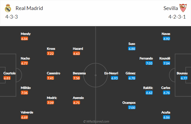 Hazard đã không còn được HLV Zidane tin dùng sau màn trình diễn mờ nhạt tại bán kết Champios League cũng như quan hệ xấu đi với các CĐV Real Madrid vì màn chào hỏi thiếu tế nhị vừa qua. Đội hình của Real Madrid tiếp tục là bộ 3 tiền vệ tốt nhất Casemiro, Kroos, Modric và sự trở lại của Marcelo khi phía trên hàng tấn công vẫn là Vinicius cùng Benzema.