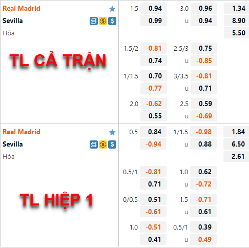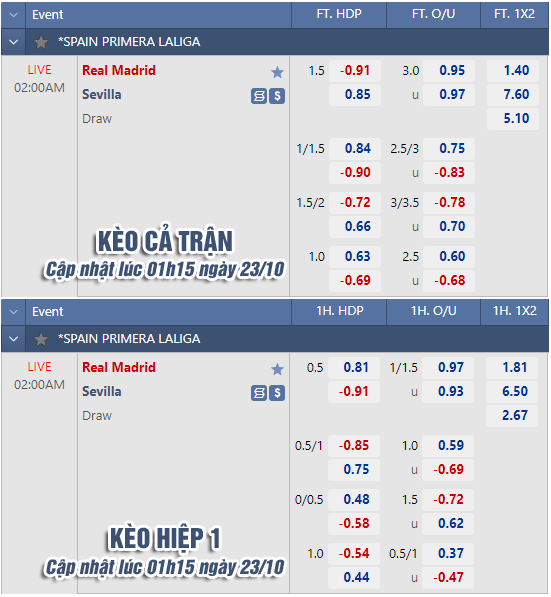 * Chốt kèo trận Real Madrid vs Sevilla (02h00 ngày 23/10)