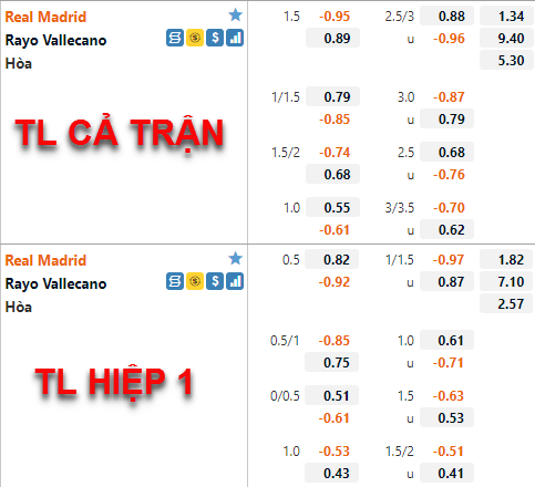 Ở thời điểm hiện tại mức chấp 1 1/2 của Real Madrid đã được nhà cái đẩy lên làm mốc chấp chính thay cho mốc 1 1/4 ở lần chúng tôi cập nhật trước. Nhưng ở bên phía tỷ lệ tài xỉu lại có nhưng diễn biến trái chiều khi mốc 3 hoà trước đây đã được thay thế bằng mốc 2 3/4.