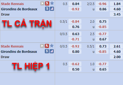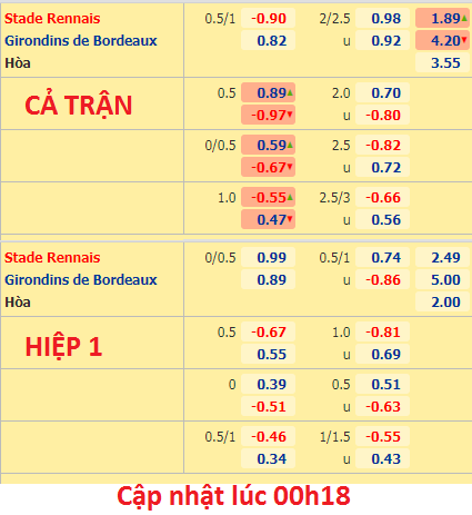 So với thời điểm đầu phiên, Rennes tăng điểm đáng kể khi kèo chính đã tiến sát lên mức 3/4. Cao hơn đáng kể hồi đầu phiên chấp 1/2 cùng điểm ăn khá cân bằng. Nếu tính từ thời điểm bắt đầu lên sàn, Rennes tăng hơn 1/4 quả bóng.