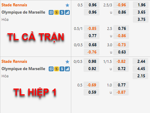 Tỷ lệ chấp 1/2 tiếp tục được duy trì là tỷ lệ chấp chính của Rennes cho tới thời điểm hiện tại, điểm ăn của cửa trên đã được điều chỉnh giảm sao với trước đây nhưng không nhiều. Trong khi đó tỷ lệ tài xỉu của trận đấu lại có xu hướng giảm điểm, mốc 2 3/4 được giữ là mốc chính nhưng điểm ăn của cửa tài đã được điều chỉnh tăng tương đối nhiều.