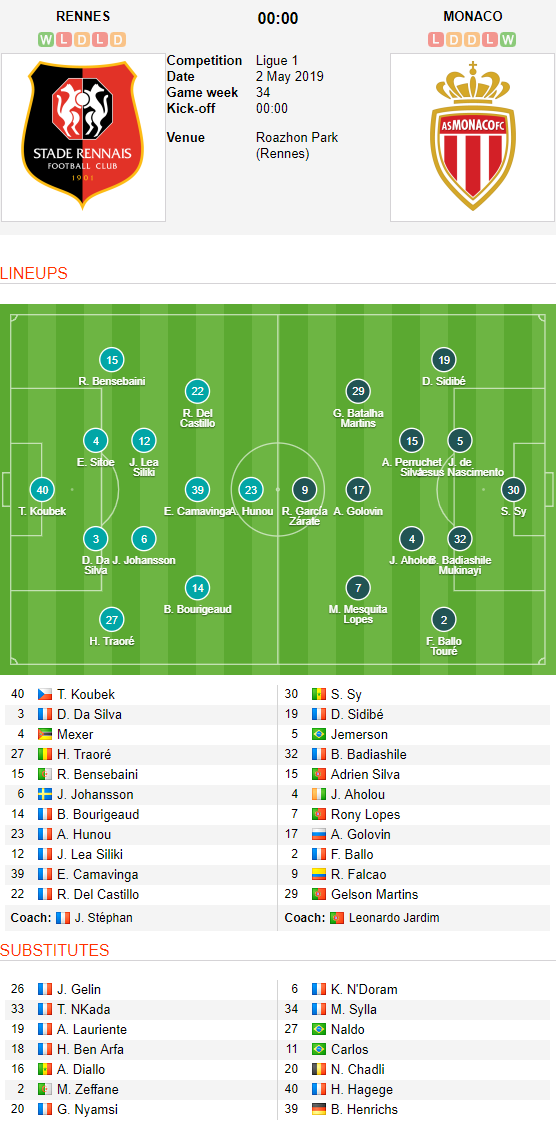 AEGoal.net chốt kèo trực tiếp trận Rennes vs Monaco diễn ra lúc 00h00 ngày 02/05 sau khi dựa trên tính toán, chuyển động về kèo châu Á và đội hình ra sân của 2 đội.