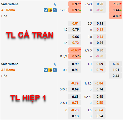 Tham khảo: AS Roma -1/2 Hiệp 1