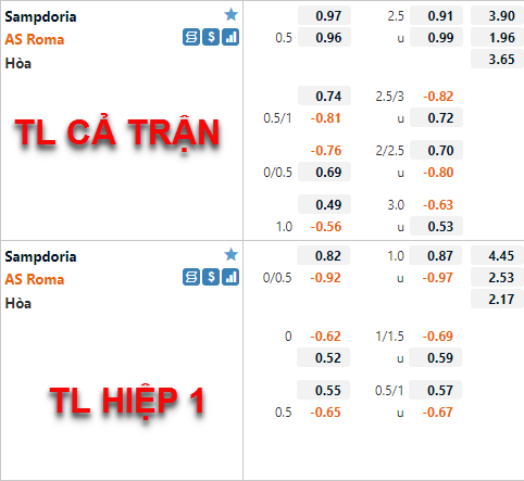 AEGoal chốt kèo bóng đá trực tiếp trận Sampdoria vs AS Roma diễn ra lúc 23h00 ngày 03/04 trong khuôn khổ giải VĐQG Italia sau khi dựa trên tính toán, chuyển động về kèo châu Á và đội hình ra sân của 2 đội.