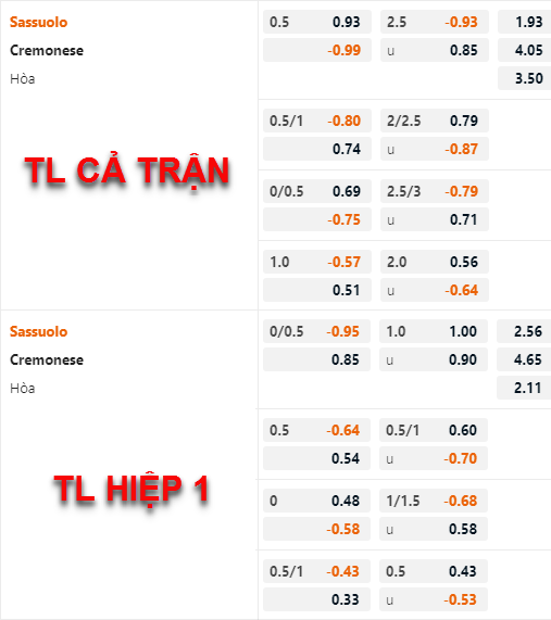 Cremonese +1/2 cả trận