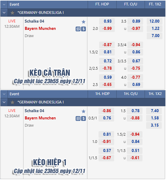 * Chốt kèo trận Schalke 04 vs Bayern Munich (00h30 ngày 13/11)
