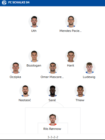 Schalke: Ronnow - Ludewig, Sane, Nastastic, Oczipka - Mascarell (c), Bozdogan - Harit, Uth, Raman - Paciencia.