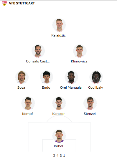 Stuttgart: Kobel - Stenzel, Karazor, Kempf - Gonzalez, Mangala, Endo, Coulibaly - Didavi, Castro (c) - Kalajdzic.