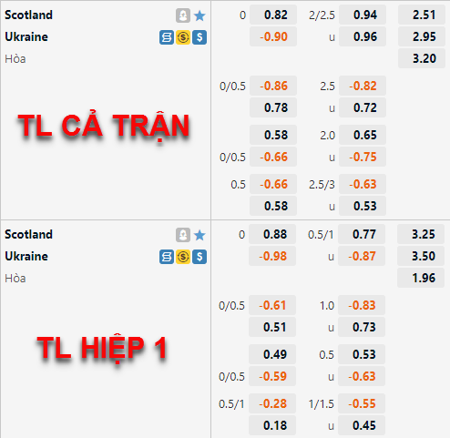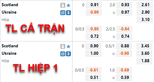 Tỷ lệ của Scotland có xu hướng tăng điểm thời gian vừa qua, hiện tại mức 0:0 vẫn được nhà cái châu Á duy trì là mức tỷ lệ chính của trận đấu nhưng điểm ăn của đội chủ nhà đã được điều chỉnh giảm tương đối nhiều. Bên phía tỷ lệ tài xỉu cũng có những diễn biến tương tự, mốc chính 2 hoà trước đây đã bị thay thế bằng mốc 2 1/4 ở thời điểm hiện tại.