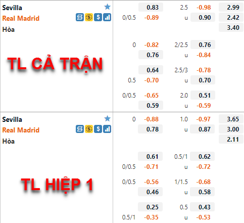 AEGoal chốt kèo bóng đá trực tiếp trận Sevilla vs Real Madrid diễn ra lúc 02h00 ngày 18/04 trong khuôn khổ giải VĐQG Tây Ban Nha sau khi dựa trên tính toán, chuyển động về kèo châu Á và đội hình ra sân của 2 đội.