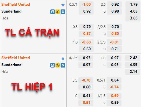 Sheffield tiếp tục có tỷ lệ chấp 3/4 như thời điểm chúng tôi cập nhật lần trước, hiện tại điểm ăn của 2 cửa cũng không có nhiều thay đổi so với trước đây. Trong khi đó tỷ lệ tài xỉu của trận đấu lại có xu hướng tăng điểm, mốc chính 2 1/4 trước đây đã được thay thể bằng mốc 2 1/2 ở thời điểm hiện tại.