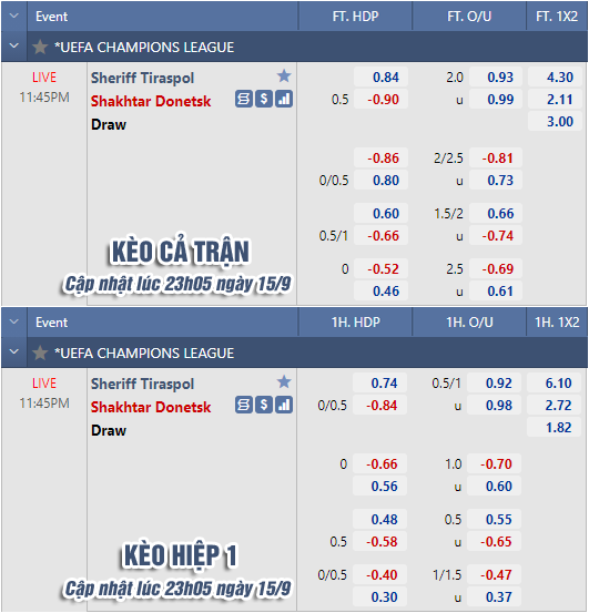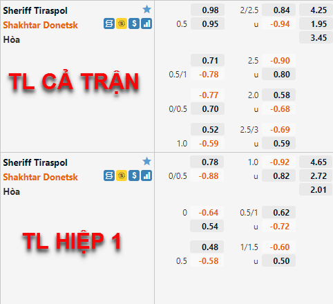 Trước đối thủ yếu hơn nhiều, Shakhtar Donetsk đã không ngần ngại sử dụng đội hình thiên hẳn về tấn công trong chuyến làm khách đến sân của Sheriff Tiraspol. Tuy nhiên trên sàn giao dịch châu Á, mức chấp của Shakhtar Donetsk vẫn không có sự thay đổi quá lớn, thấm chí điểm ăn còn tăng mạnh nên độ tin cậy là không cao.