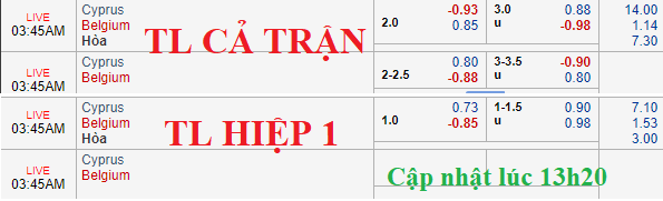 Từ mức chấp 2 hòa, Bỉ đã 2 lần vượt kèo và cho tới trước khi bóng lăn, mức kèo đã biến động rất mạnh, tới mức 2 1/2 trước đảo Cyprus. Rõ ràng, giới đầu tư đang dành sự tin tưởng gần như tuyệt đối cho thày trò Roberto Martinez.