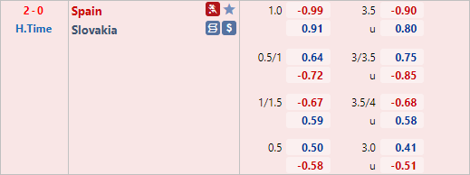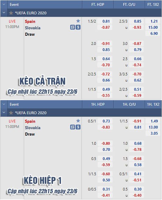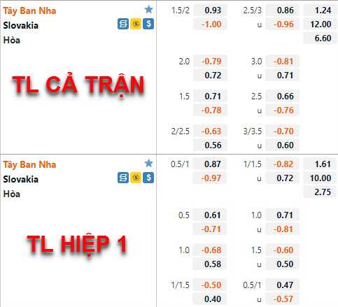 Bước sang hiệp 2, nhà cái vẫn xếp Tây Ban Nha ở kèo chấp 1 hoà, điều này cho thấy khả năng họ có thêm bàn là rất cao.