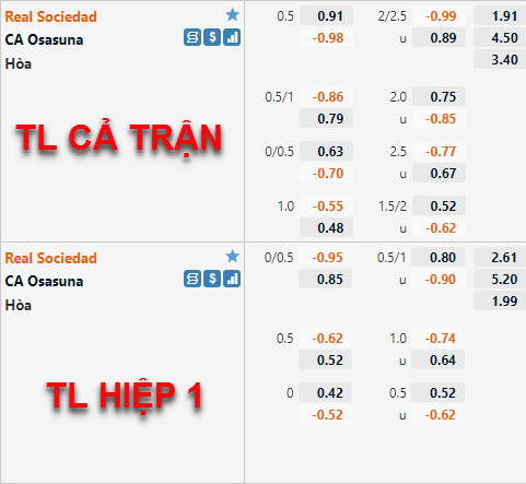 AEGoal chốt kèo bóng đá trực tiếp trận Sociedad vs Osasuna diễn ra lúc 00h30 ngày 28/02 trong khuôn khổ giải VĐQG Tây Ban Nha sau khi dựa trên tính toán, chuyển động về kèo châu Á và đội hình ra sân của 2 đội.