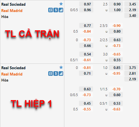 Tung đội hình mạnh nhất vào sân ở trận này, Real Madrid đang tạo ra sự khách biệt không hề nhỏ về mặt nhân sự trước Sociedad. Tuy nhiên trên thị trường, việc vẫn chỉ giữ mức chấp 1/4 đã cho thầy đánh giá không cao vào khả năng vượt qua thử thách của thầy trò HLV Carlo Ancelotti không được đánh giá cao.