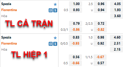 AEGoal chốt kèo bóng đá trực tiếp trận Spezia vs Fiorentina diễn ra lúc 21h00 ngày 30/10 trong khuôn khổ giải VĐQG Italia sau khi dựa trên tính toán, chuyển động về kèo châu Á và đội hình ra sân của 2 đội.