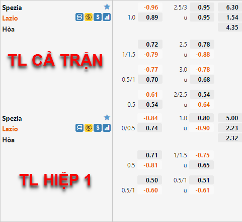 CHỐT KÈO: Lazio (-1 1/4) cả trận
