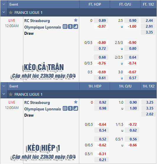 * Chốt kèo trận Strasbourg vs Lyon (0h00 ngày 11/4)