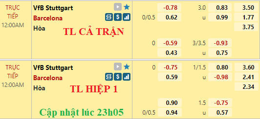 Chốt kèo trực tiếp trận Stuttgart vs Barcelona (23h00):