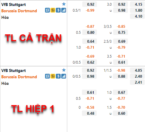 AEGoal chốt kèo bóng đá trực tiếp trận Stuttgart vs Dortmund diễn ra lúc 01h30 ngày 9/4 trong khuôn khổ VĐQG Đức sau khi dựa trên tính toán, chuyển động về kèo châu Á và đội hình ra sân của 2 đội.