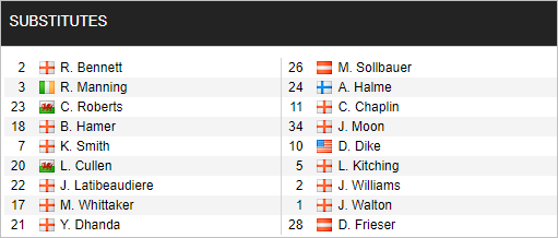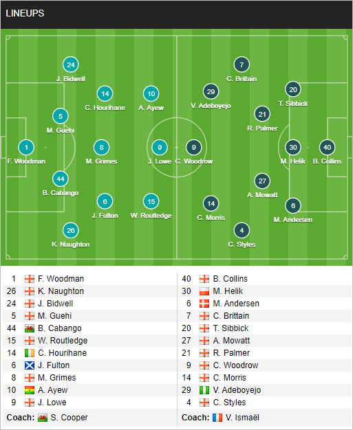 Swansea: Woodman; Naughton, Cabango, Guehi, Bidwell; Fulton, Grimes, Hourihane; Ayew, Cullen, Lowe