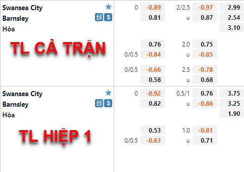 AEGoal chốt kèo bóng đá trực tiếp trận Swansea City vs Barnsley diễn ra lúc 00h30 ngày 23/05 trong khuôn khổ giải Hạng nhất Anh sau khi dựa trên tính toán, chuyển động về kèo châu Á và đội hình ra sân của 2 đội.