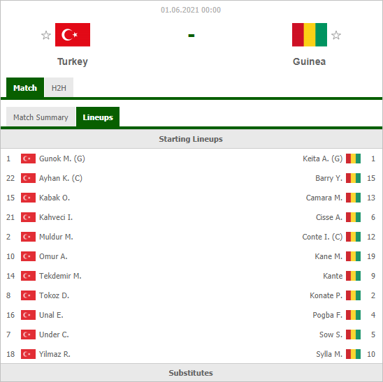 - Trận đấu: Thổ Nhĩ Kỳ vs Guinea (Giao hữu Quốc tế)